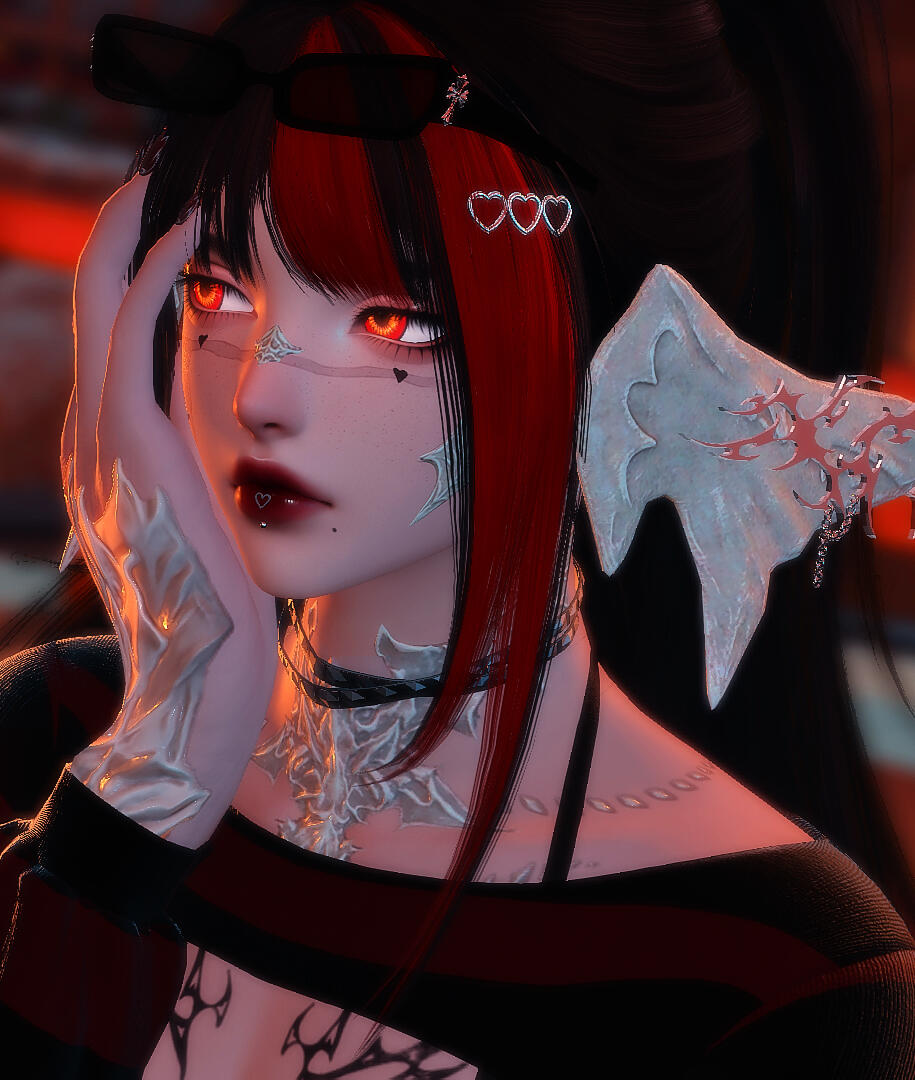 Cactuar, Aether • Headbutler & Artist @ Seaside Café & LoungeABOUT TOMIE HOMURA . . . Raen au'ra • DRG & SGE • Nidhogg's vessel • Height is 4'11" • Bisexual • Taki's older twin • Lore is under construction, tw for a few topics that may be uncomfortable. please proceed with caution <3APPEARANCE . . . Albino &. easily sunburnt. Lightly freckled on her cheeks. Scale on her nose. Golden hues with dragon sight. Born with white hair, dyes her hair black & red. Built fairly muscular, leg muscles mostly. Has little fangs. Her make-up is deep crimsons and lighter shades of black. Lip piercings & body tattoos are to be seen. Burn scars on her body. Lots of silver accessoires.